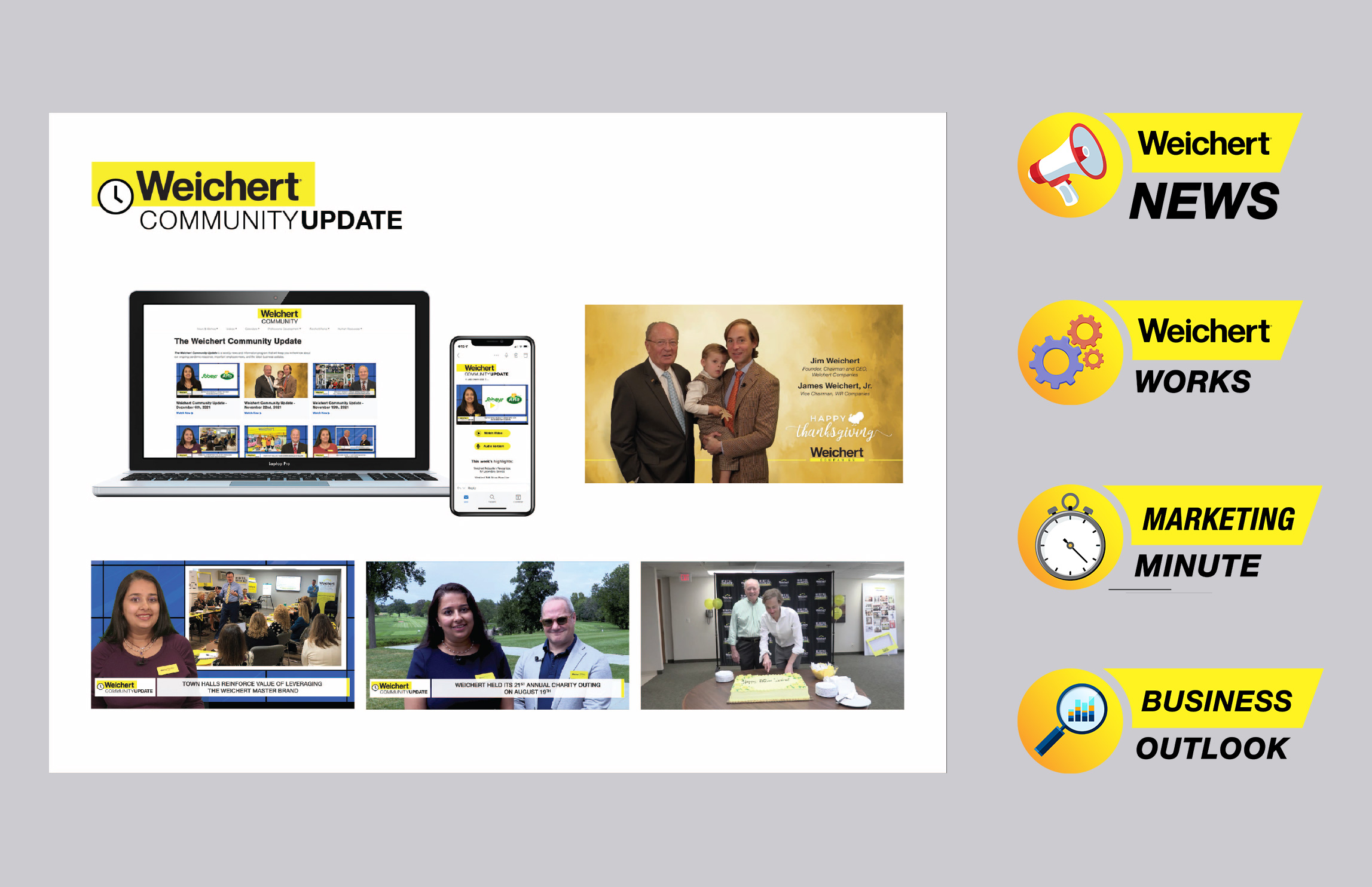Weichert Community Update was an inter-office video that would run weekly, and update all Weichert employees across the country on what was going on with overall company agendas, as well as, pinpointing certain achievements by Sales Associates and Teams in their areas. Created and supplied all graphics and photo layouts to video editor, and update web graphics in accordance.