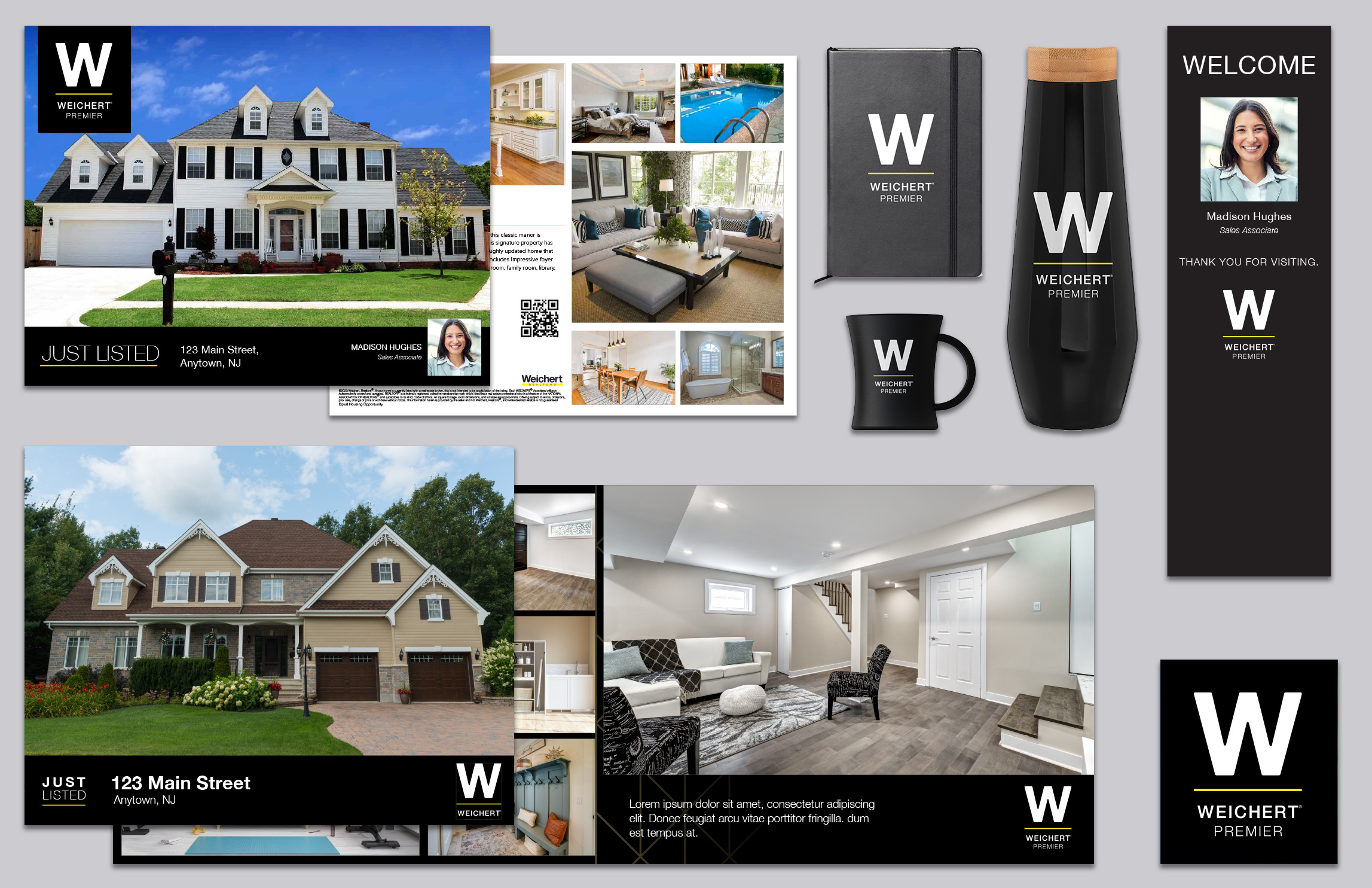 Weichert Premier is a separate high-end, real estate housing campaign, outside of the regular Weichert Realtors brand. Developed the new logo and overall feel of a more luxurious brad. Produced collateral that covered all basis from printed brochures, flyers, signage, business cards, etc.; digital collateral that included social media, eblasts, banner ads; promotional materials that included water bottles, espresso cups, shirts, hats, pens, etc.